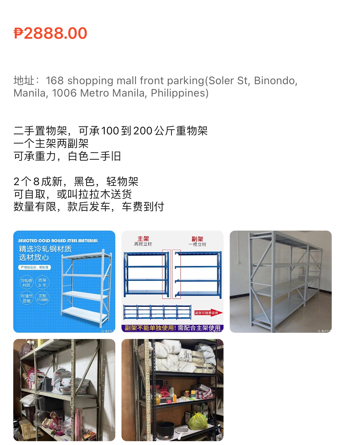 #二手重物货架,白色,一主架2副架,便宜出,网约车送货,或自取,款后安排