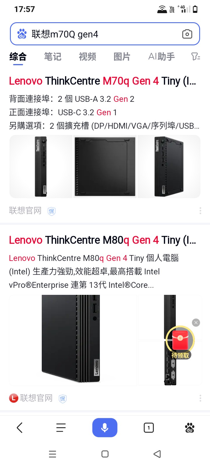 联想m70Q gen4迷你主机 13代i3 13100T处理器,16高频内存,512g固态 UHD...