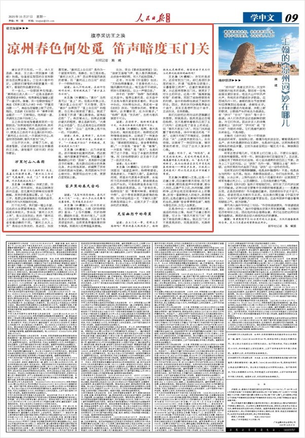 记者:明白了,说“何须怨”,其实是欲扬先抑。羌笛吹得越是哀怨,越暴露对春天的渴望。而“春风不度”的断言,反而让读者在否定中寻觅到春的踪迹——那笛声本身,不就是心灵的春风?所以您是在荒凉中埋藏下希望。