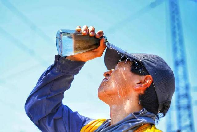 6月新疆乌鲁木齐高温,地表温度50有余,乌鲁木齐局的铁路人热情似火,头顶烈日安全作业,调车组在滚烫的钢轨间奔走,汗水浸湿衣衫一遍又一遍。@方伟